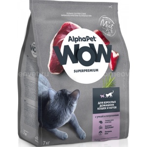 Купить AlphaPet WOW сухой корм для взр. домашних кошек c Уткой и потрошками с доставкой