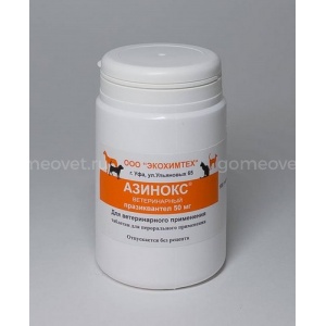 Азинокс ветеринарный. Действует на все стадии развития ленточных гельминтов, в том числе, Echinococcus multilocularis, Еchinococcus granulosus, Opisthorchis felineus, Dipylidium caninum, Multiceps multiceps, Mesocestoides lineatus, паразитирующих у животных и обладает широким спектром антигельминтного действия. Применяют для профилактики и лечения эхинококкоза, альвеококкоза, мезоцестоидоза, дипилидиоза, дифиллоботриоза и других гельминтозов.