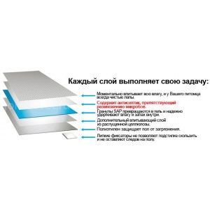 3 слой: Гранулы SAP превращаются в гель и блокируют влагу и запах.