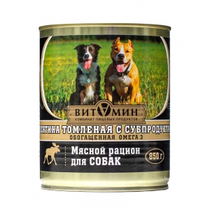 Влажный корм для собак ВИТАМИН Лосятина томленая с субпродуктами, банка 850 гр.